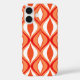 Estuche de teléfono en un patrón de diamante moderno de mediados de siglo de formas marquesas anidadas - naranja de coral claro y profundo, con acentos naranjas de mandarina blanco y oscuro