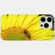 Este funda muestra mi fotografía de cierre de una cuarta parte de un girasol gigante con una abeja. Foto ©Patricia AZ Phillips