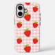 frutillas rosa pastel de fruta verde claro patrón de impresión lindo kawaia país trenzado retro