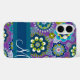 ¡La primavera está aquí! Un diseño artístico divertido y moderno para tu iphone. Este patrón de flor retro es colorido y tiene un aspecto de boho con violetas y azules.