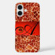 Elegante, elegante, colorido diseño único; patrón amarillo de piel de animal salvaje salvaje con una brillante piedra de gema de rubí roja. Puede mover o cambiar el tamaño de la piedra de gema a personalizar con sus iniciales y su propio texto.