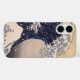 El ilustracion de época presenta un diseño marítimo de arte bonito con una avenida de enormes olas de marea estrepitosas con botes de gente y el Monte Fuji a lo lejos. Aunque se supone que es una ola de marea, es más probable que sea un okinami o una ola grande. 36 Vistas del Monte Fuji: La Gran Ola frente a la costa de Kanagawa, por Katsushika Hokusai del período Edo, c. 1830. Impresión tradicional de bloques de madera.