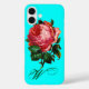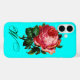 Elegante, colorido diseño floral vintage, rosa de col rosa rojo con hojas verdes sobre fondo azul acuático verde azulado.