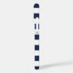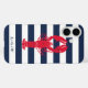 ¡Prepárese su teléfono para esos fiestas de playa de verano y tortitas con este funda de rayas de moda perrito! El diseño presenta amplias franjas náuticas azul marino y blanco con un ilustracion de langosta rojo y su monograma 3-inicial en la marina.