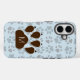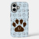 Los amantes de los perros descubrirán este gran funda con temática mascota de azul suave con huellas de pata descoloridas y su monograma dentro de la huella de pata de un perro hecho en chocolate marrón y adornado con un trazo blanco.