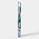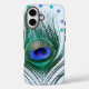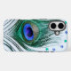 En este estuche para iPhone personalizado se muestra una hermosa fotografía de una pluma de pavo real con joyas azules.