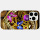 Elegante diseño de punk de vapor con engranajes metalizado. Coloridas mariposas azules rosas con piedras de gema violeta brillante
