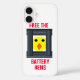 Este lindo estuche de teléfono tiene un mensaje muy serio. El diseño se compone de una pequeña chica amarilla con unos ojos negros lindos y un pico naranja que asoma por detrás de una jaula cuadrada metalizado. El texto dice Liberar las gallinas de la batería. Refleja mis problemas personales con la manera en que los animales se mantienen y explotan para uso humano en todo el mundo. El texto rojo en negrita dice "Libere las gallinas de la batería"