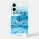 Personalice este funda azul y blanco náutico con su monograma o nombre para una persona con un toque subestimado. El diseño presenta "mares el día" con letras azul marino sobre un fondo acuático de ondas oceánicas azules y blancas.