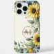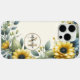 Earth Tones Guay Green con estuches para iPhone de Damasco floral de girasol amarillo y marrón