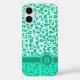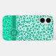 Un único funda monograma de estilo leopardo impreso en tonos verde menta acuática. Personaliza este elemento con tu elemento inicial. En este ejemplo se lee B. Este patrón original único fue diseñado por Sarah Trett para www.mylittleeden.com