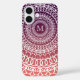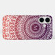 Nuestro estuche para iPhone inspirado en Marruecos exótico presenta un patrón de mandala en círculos concéntricos, rodeando tu monograma inicial en blanco. Un fondo oscuro degradado de tonos de puesta de sol que descienden del coral de mandarina al violeta profundo, acaba este funda con un aspecto humorístico y rico.