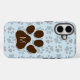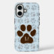 Los aficionados al gato ronronearán por este funda de aspecto mascota con motivos de azul suave con huellas de pata descoloridas y su monograma dentro de la letra de un gato hecho en chocolate y recortado en un trazo blanco.