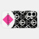 Símbolos de paz sólidos y contorno en blanco y negro con un emblema en forma de círculo y diamante como telón de fondo para su nombre o inicial. Diseño original creado por Holiday Hearts Designs.