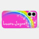 chicas de diseño de arcoiris bonito rosa y colorido funda. Personaliza con tu propio nombre hasta 10 letras. Este ejemplo dice Laura-Jayne. Diseñado e ilustrado exclusivamente por Sarah Trett para www.mylittleeden.com