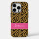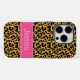 Un estuche elegante para iPhone de patrón leopardo con una franja rosa. Preppy y lindo — ¡Fácilmente personalizable con tu nombre!