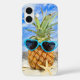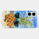 piña con gafas de sol en forma de corazón en la arena con pez estrella y concha de mar