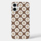 Los puntos retro con un borde contrastante, basados en un patrón clásico de tapicería moderna de mediados de siglo: los puntos de color marrón claro bordeados de blanco sobre un fondo de taupe más profundo