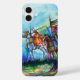 Caballeros medievales con caballos, coloridos y expresivos cuadros figurativos contemporáneos en vivos colores azul, rojo, blanco verde, marrón, acuarela de Alessandro Lumini 1989 Inspirados en la leyenda del Rey Arturo y los Caballeros de la Mesa Redonda .