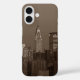 Fotografía de arte de viajes en color marrón Sepia - Línea de la ciudad de Nueva York, Edificio Chrysler y río