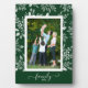 La placa de mesa con un caballete empotrado muestra tu foto favorita rodeada de un hermoso borde de follaje blanco, puntos y bayas sobre un fondo verde. CAMBIAR el color de fondo para COINCIDIR con la foto. CAMBIAR el texto de la FAMILIA a cualquier cosa - CONSEJO: coloque el texto entre los dos cuadrados para conservar los cambios de texto. Ideal como regalo o para mostrar tu foto favorita en tu propia casa. Los colores de la imagen se colocan directamente en el panel de trabajo para obtener una imagen increíblemente nítida con una superficie limpia y fácil de borrar.