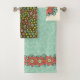 En el cuarto de baño hay una toalla retro de baño floral de estilo vintage con audaces marines rosas y acuáticas sobre un fondo verde agua. Perfecto para los amantes de la cabaña, de la decoración de un cuarto de baño de chicas o de las paletas nostálgicas, este conjunto de toallas suave y elegante le da un toque divertido y femenino a su espacio. Ideal para refrescarse en el cuarto de baño, para bañarse en el baño o para disfrutar de un encantador regalo de bienvenida.