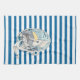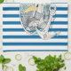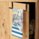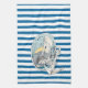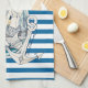 ¡La toalla de cocina horizontal azul y blanca brillante del diseño del modelo ofrece un tema náutico del océano con un ancla de la sirena y de la plata!