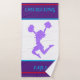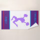Toalla de baño animada en color morado y blanco. Nombre personalizado.