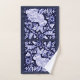 Mi cerámica original de conejo azul y blanco con derechos de autor es un hermoso patrón en esta toalla de mano.