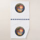 Transforma tu baño en un santuario costero con esta toalla de baño "Escape de Verano". Con un impresionante emblema tropical de estilo 3D, el diseño captura una serena puesta de sol en la playa con palmeras balanceándose, tablas de surf coloridas y rayos dorados que se reflejan en las olas del océano. Envuelta en un borde sofisticado de azul marino y dorado y marcada con "EST. 2026", esta toalla de alta calidad es perfecta para casas de vacaciones, viajes a la playa o para agregar un toque de paraíso a tu rutina diaria.