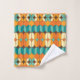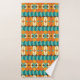 Toalla de baño moderna de mediados del siglo. Patrón retro.Colores: amarillo, turquesa, marrón y naranja.