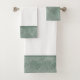 El conjunto decorativo de la toalla parece agua que fluye. El color es verde claro y fresco. La parte principal de la toalla es blanca y nevada con una banda verde maciza que contrasta. Úsalo con la cortina de ducha correspondiente. Diseño de la marca de baldosas de Oregon Fay Jones Day