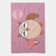 Esta impresionante toalla de cocina cuenta con una linda lechuza marrón con grandes ojos adormilados. El búho sostiene un globo rosa pálido de bonito y un ramo de flores rosas brillantes envueltas en un cono rosa pálido. El globo tiene el texto de personalizable en su interior para que puedas personalizarlo para celebrar cualquier edad de 1 a 100 años.