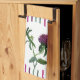 Esta Toalla de Cocina de Lado presenta una pintura al óleo de arte digital de flores de trébol con rayas a juego para un estilo Shabby Chic.