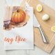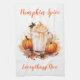 Esta toalla de cocina se muestra con una calabaza impresa en el arte de café con leche para el otoño, el texto dice la calabaza Spice Everything Nice. Personalizar este artículo o compra tal cual.