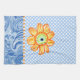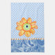 Sube una cocina con esta encantadora y brillante toalla de cocina de 16" x 24" llena de grandes puntos de polka blancos sobre el azul cielo, salpicada con mi gran girasol color agua perky. diseño naranja línea de acento y un borde marbleizado azul océano añaden sofisticación.