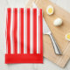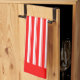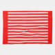 Una toalla de cocina retra roja y blanca del modelo de la raya del caramelo con las fronteras rojas.