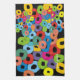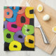 La toalla de cocina abstracta caprichosa y enrrollada, artista diseñó círculos intrépidos y coloridos en golpeteo abstracto en un fondo negro. Esto haría un gran regalo para cualquier cocinero que aprecie algo diferente. La toalla es firmada por el artista: gabel de Gail