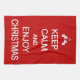Esto es una toalla de cocina que ofrece el refrán famoso GUARDA CALMA Y… pero el refrán se ha alterado para crear un diseño chistoso del navidad. El texto, en blanco contra un fondo rojo, lee GUARDA CALMA Y DISFRUTA DE NAVIDAD, allí es también una puntilla ilustrada blanco del acebo sobre el texto. Esto pudo hacer para un regalo del navidad de la diversión. www.nataliekinnearphotography.co.uk