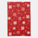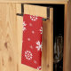 Esta toalla de cocina de los copos de nieve ofrece copos de nieve sobre un fondo rojo festivo. Perfecto para su cocina de vacaciones campestre.