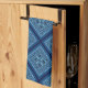Agrega un toque de color a tu cocina blanca con un juego de toallas azules con estampado geométrico de diamante y patrón mosaico. Esta toalla estampada también se vería fabulosa en el baño como toallas de mano.