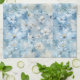 Toalla de cocina tipo patchwork floral y de margarita en tonos azules. El conjunto es a juego con la decoración de una casa con flores azules. Mug coincidente.