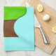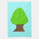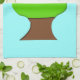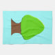 Esta impresionante toalla de cocina cuenta con una divertida imagen digital de un árbol con una tapa verde y un baúl marrón sobre un fondo azul cielo.