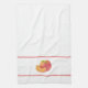 En esta toalla de cocina se puede ver una huella de mi pintura acuarela de una rodaja de melocotón y melocotón.