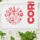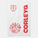 La toalla de cocina (24" x 16") que ofrece el logotipo de CorleyQ y el "punto bajo y reducen" el reloj.