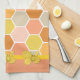 Toalla colorida de cocina hecha en un elegante diseño de peine de miel. Gráficos de abejas amarillas adornan los bordes superior e inferior de la toalla. Personalizar para agregar su propio texto.