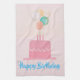 Decora tu cocina con esta toalla de cumpleaños rosa. Esta toalla es la decoración perfecta para fiestas de cumpleaños de niños o adultos. Personaliza este diseño de globo y pastel de cumpleaños con tu propio texto.