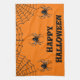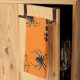 Toalla de cocina con imagen de arañas sobre fondo naranja para Halloween