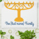 Una buena manera de hacer una casa un poco más festiva. Esta toalla de cocina cuenta con un Chanukiah (Menorah) con velas de personalizable donde se pueden teclear los nombres de los miembros de la familia o amigos. También puede reemplazar el apellido del Chanukiah por el suyo o el de un amigo o familiar. Haga clic o puntee en el botón Editar y, a continuación, haga clic en cada cuadro de texto azul y borre el texto del titular del lugar para agregar los nombres iniciales o los apellidos, según lo especificado por el texto del titular del lugar. También puede cambiar las fuentes que he utilizado y/o reubicar objetos si lo desea.