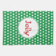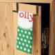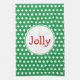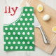 Una alegre toalla de cocina navideña decora este alegre estampado de puntos de polka verde y blanco. El diseño es de arte original.